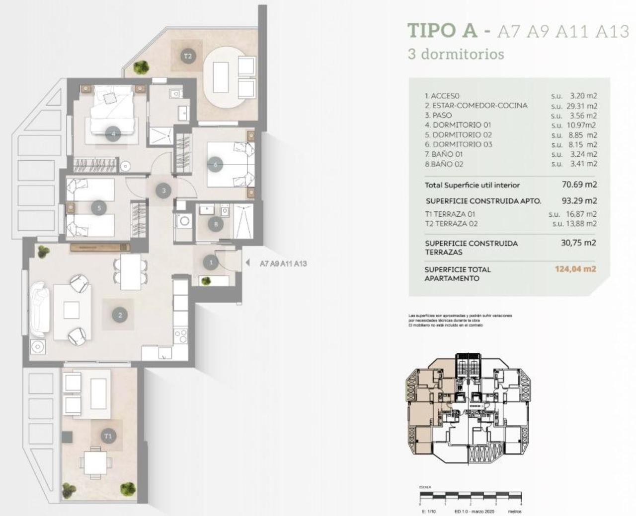 Denna exklusiva anläggning består av två eleganta torn med 15 våningar och erbjuder ett urval av lägenheter med 2, 3 och 4 sovrum. Alla bostäder har en privat parkeringsplats i garaget och förråd, och är utformade för att maximera det naturliga ljuset och den panoramautsikten över Medelhavet och lagunen Las Salinas, särskilt från sjunde våningen och uppåt.
